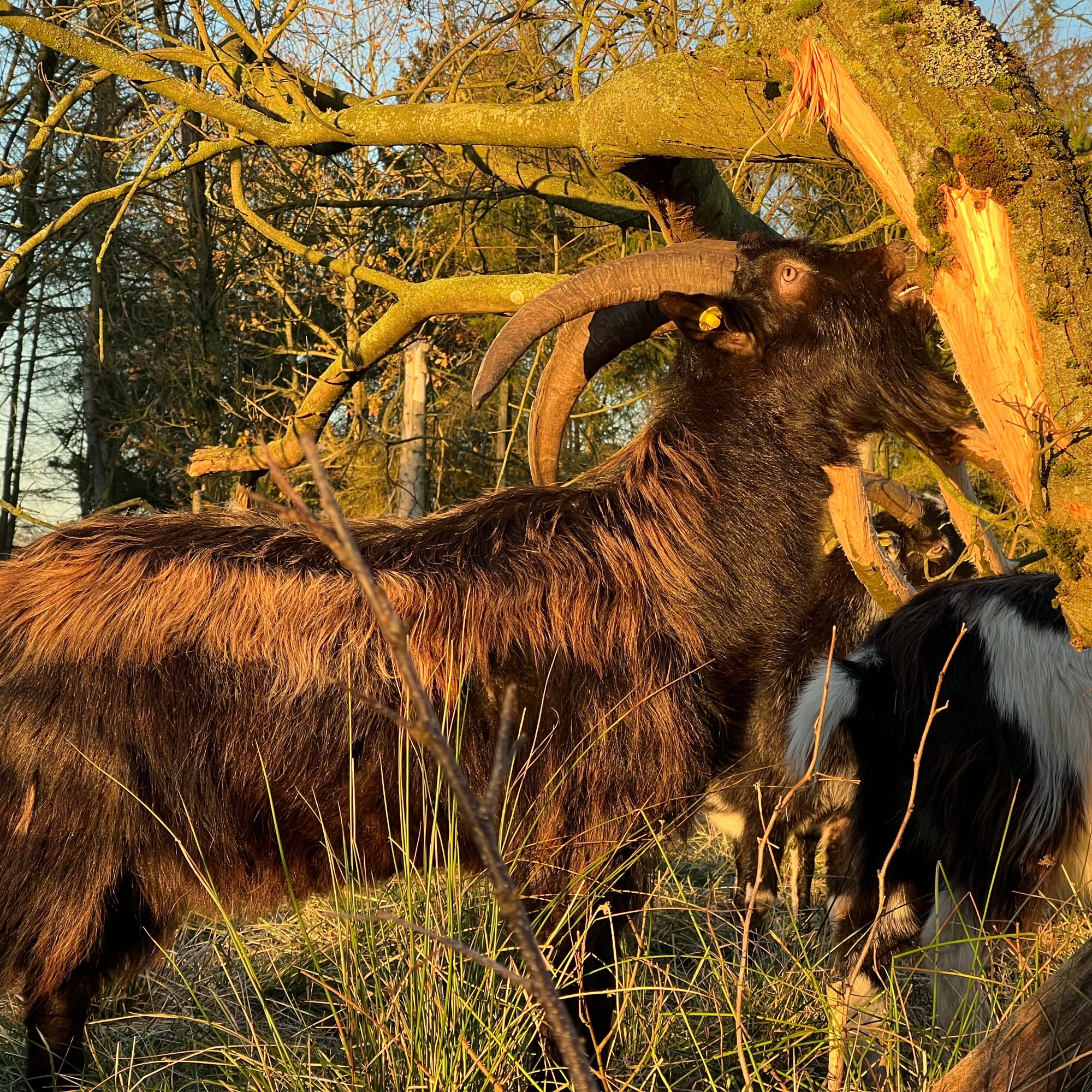 I sensommeren 2022 kom der geder på arealet. Vores valg faldt på dansk landrace ged. Geden betragtes, som en af de alpine racer og har både dækhår og danner tæt underuld om vinteren.