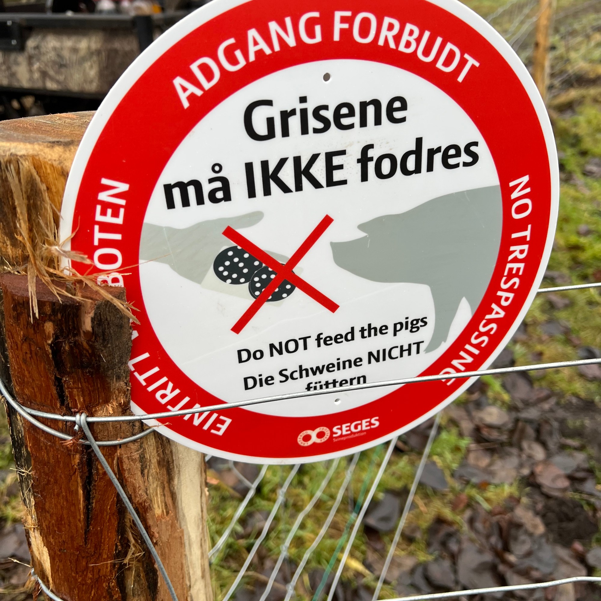 Med grise er det et lovkrav, at de ikke blot skal være hegnet forsvarligt inde, som alle andre dyr, men loven foreskriver også, hvordan dette skal eller i hvertfald kan gøres. Vores hegn består af et udvendigt maskehegn og indvendigt på hegnstolpen, er der tre strømførende tråde.